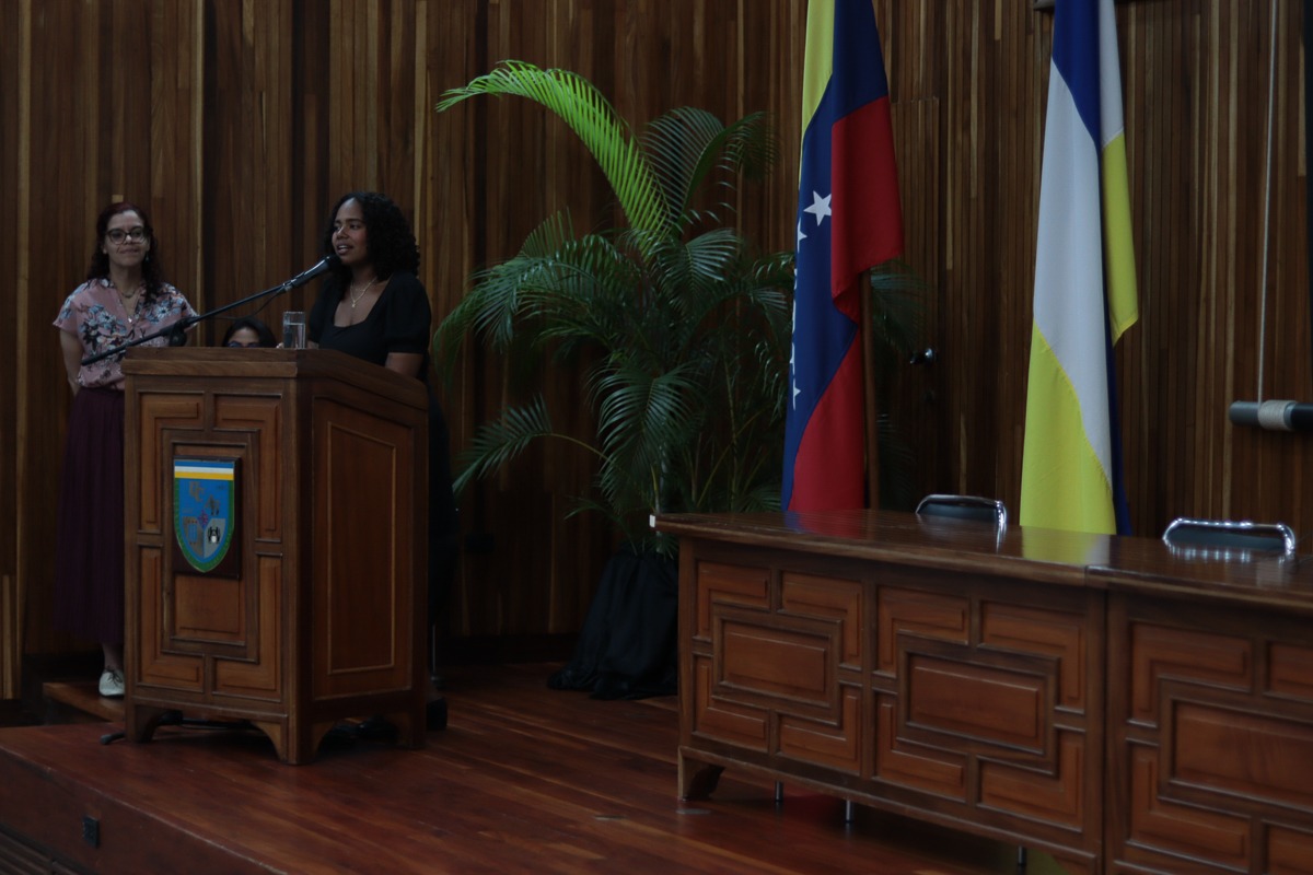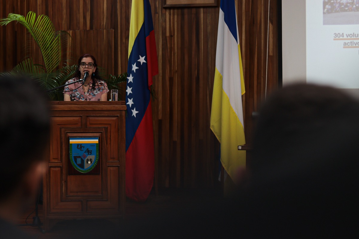 Eduvigis Sánchez, directora de Proyección y Relaciones Comunitarias, presentó un balance de los logros alcanzados por el voluntariado. Entre otros datos, detalló que, durante el año 2024-2025 estuvieron activos 304 voluntarios, quienes se involucraron en 20 proyectos y alcanzaron a unos 2.000 beneficiarios en las comunidades de Antímano, La Vega y Caricuao.