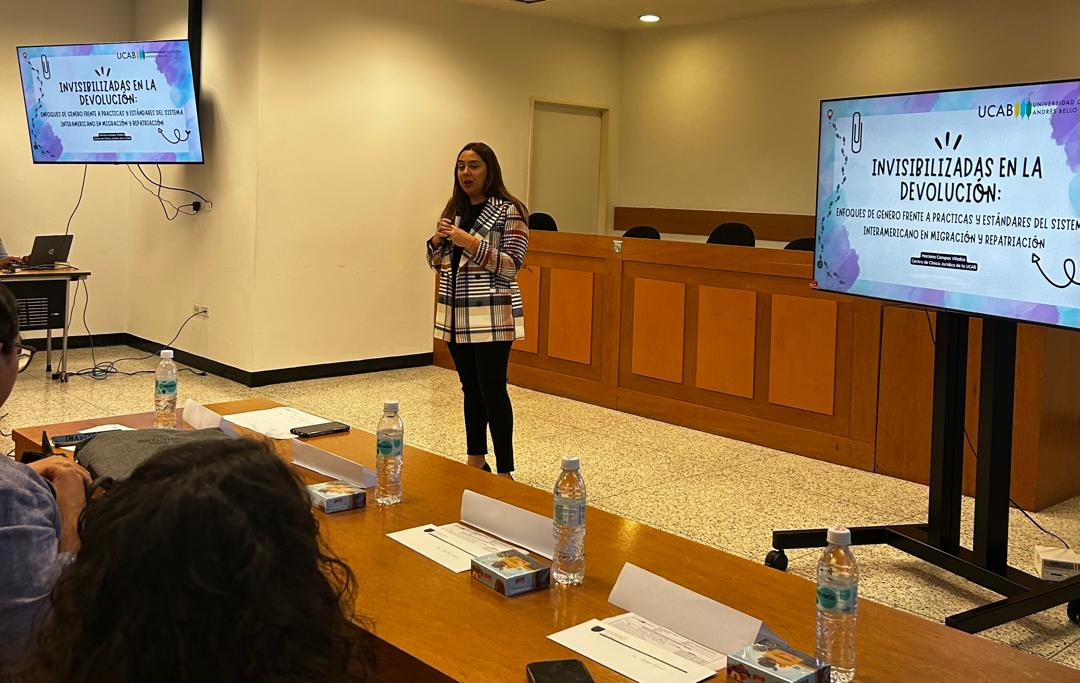 La constitucionalista Mariana Campos, coordinadora de la Comisión de Derecho Constitucional del Colegio de Abogados de Caracas, concentró su exposición en el marco normativo internacional, tanto el vinculante como los estándares. Estos últimos indican a los Estados y autoridades el camino a seguir. No obstante, precisó que ahora están mayormente enfocados hacia los casos de refugiados y solicitantes de asilo.