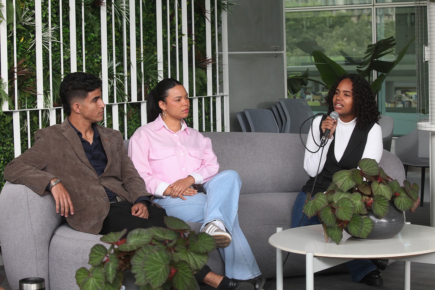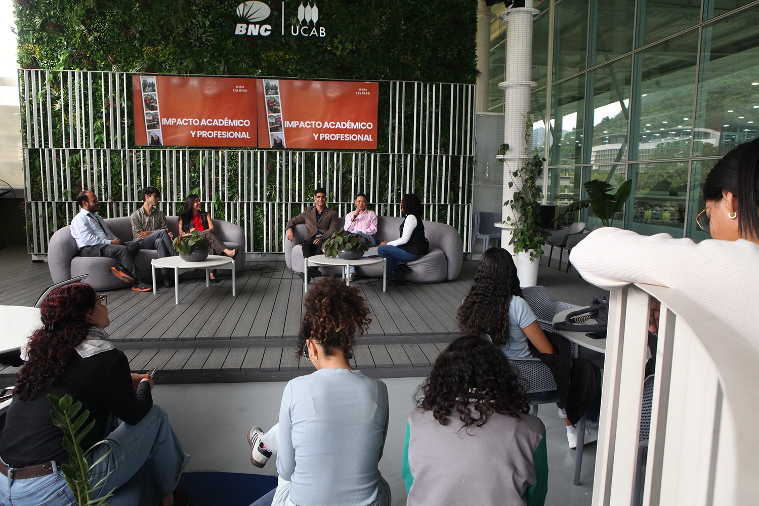 Mizael Peña (Derecho), Victoria Miranda (Ingeniería), Cehommy Rodríguez (Psicología) y Marienny Regalado (Derecho) compartieron, en el Spot BNC-UCAB, sus experiencias durante las aproximaciones hechas con líderes comunitarios en cada una de las sesiones de campo asignadas con tareas específicas.