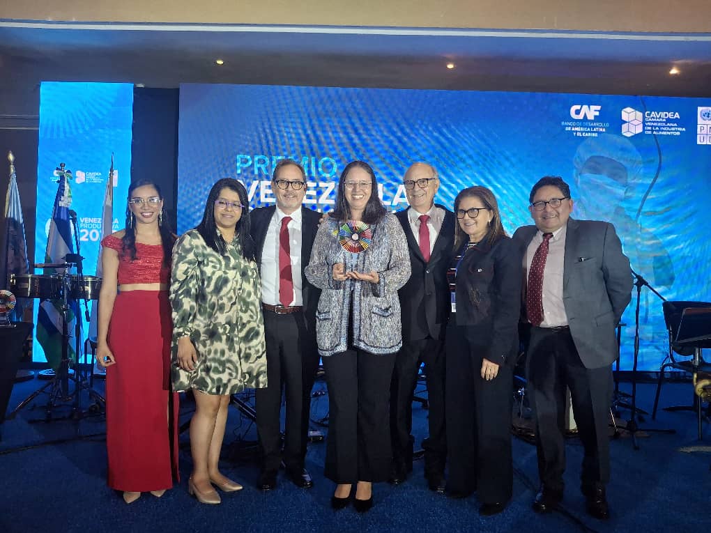 El galardón «Venezuela Productiva 2030» fue entregado por René Gómez García (CAF), Juvenal Arveláez (Cavidea), Luis Francisco Thais Santa Cruz (PNUD-Venezuela) y Margaret Hidalgo (Programa de Liderazgo Femenino del PNUD), al cierre de un evento con el mismo nombre que duró tres días.
